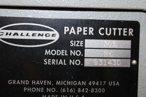 For sale is a CHALLENGE PAPER CUTTER Model MC, SIZE 305, 208/230V We powered up and it works